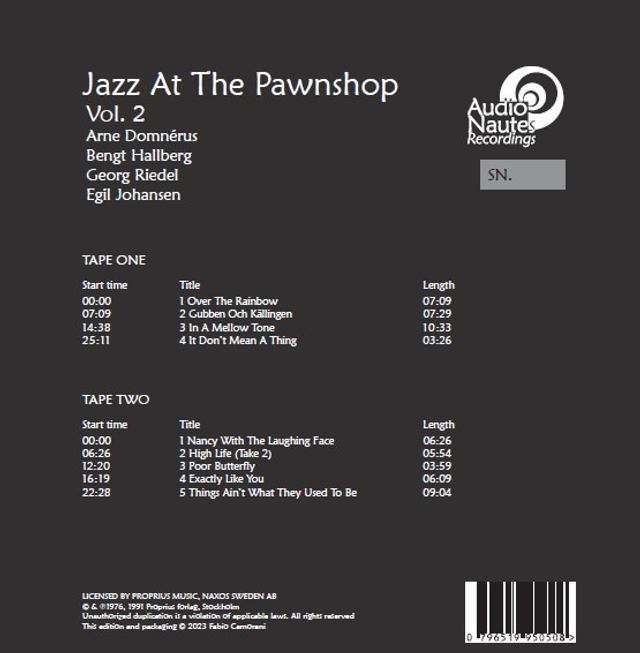 Another selection of the world-famous 1976 analogue recordings at the Pawnshop Jazz Club in Stockholm, Sweden, with the outstanding Domnerus Group (still going strong). And a token of sound engineer Gert Palmcrantz's mastership!